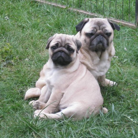 Möpsinnen, die ihresgleichen suchen ! Beide werden im August 2 Jahre alt. Fehlerfrei im Exterieur - Rassestandard GB -, ultra-sportlich, vollkommen offene Atemwege, top Charaktere. Die Nachkommen der Mops-Legenden : Canis Pugnax Baucis (Weltsieger J, Champion, Best of Breed), Canis Pugnax Finnikin Fila Baucis, Europasieger J, Champion, Best of Breed, Canus Pugnax Venus von Mim, Champion, Klubsieger, Best of Breed, Hall of Fame. |