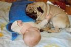 Canis Pugnax Rockefeller - aus den Eltern : Canis Pugnax Mab x Canis Pugnax Jasperdin - führt ein fröhliches Mops - Leben bei Famile Weinberger und ist überglücklich über sein kleines Schwester'chen, das er nicht mehr aus den Augen läßt und wie es sich für einen Mops gehört, auch sehr brav beschützt.