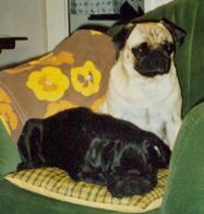 Canis Pugnax Honorate Eleonora (schwarz) und Canis Pugnax Celestis Caecilia (beige) im stolzen Eigentum von Familie Dr. Christine Keller, Dr. Peter Fessler