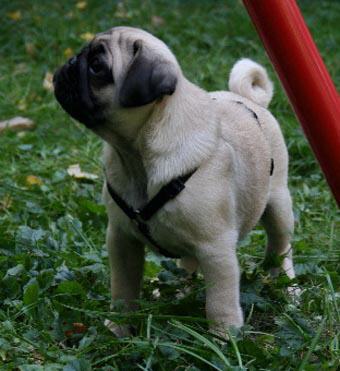 Canis Pugnax "Die Kleine Mamsell" im Alter von 3 Monaten. Mamsell'chen entstammt der Ehe : Canis Pugnax Venus von Mim x Canis Pugnax Tut Anch Amun und ist eine sehr, sehr temperamentvolle apricot Hündin.