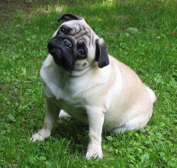 Die Macht der Gene : Mopsrüde Canis Pugnax Pug King Laurin - links und Mopshündin Canis Pugnax Esmaralda, 8 Monate jung - rechts im Bild. Mops - König Laurin, Vater von Esmaralda, ist hier noch in seiner Jugendzeit, ebenfalls im Alter von 8 Monaten, abgebildet.