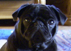 Der Hund mit dem sprechenden Gesicht zeigt eine Mimik, die im Tierreich ihresgleichen sucht. Sein Antlitz spiegelt den gesamten Weltschmerz wieder, all unvorstellbares Leid und dann - all vorstellbare Freud, Neugierde, Feuer, Intelligenz und Lebenshunger : Ein Schauspieler par excellence - fand er doch seit jeher als Carlin (Hofnarr) seine Verwendung. Und die Stimme des Mopses - vom Baß bis zum Tenor reicht sein Repertoir. Leider wird dieses behagliche Schnurren heute oft falsch interpretiert. Der Mops leidet nicht an Atemnot, wenn er uns tief grunzend mitteilt, daß der Schoß seines Herrn ja so behaglich ist und auch die Hand, die ihn krault.