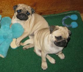 Die beiden Mädchen aus Quid pro Quo, welche die Zukunft von Pugnax Pugs weiterführen werden : Canis Pugnax Tres Jolie aus Okke