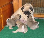 Der gesamte Wurf äußerst liebevoll betreut von Dr. Klammbauer, natürlich auch die Mutter, die schöne Canis Pugnax Venus von Mim und waren die Möpslein in seinen Händen immer fidel und gesund