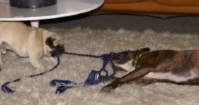 und heute genießen die Nachkommen seine fürsorgliche Betreuung : darunter die äußerst sportiven Geschwister, die Jüngsten des Pugnax-Clans derzeit - Goldi (Schönchen Goldhaar) und Tres Jolie.
