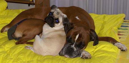 Wie ich, durfte Ynuk mit prachtvollen Boxern aufwachsen, die ihn bedingungslos beschützen, oder er sie ? Natürlich, es sind ja Damen und Ynuk hält ein wachsames Auge auf seine Liebste !