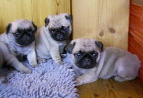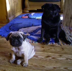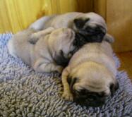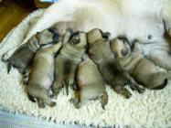 Diese Mops - Kinder sind alle silber-beige und Radegunde ist steingrau.