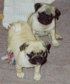 Beide Mops - Mädchen sind mit 10 Wochen bereits sehr sauber und zeigen große Freude am Laufen an der Leine. Auf diesem Bild erkennen Sie, welche Kleidung den Mops - Kindern zugedacht ist, damit diese mit Freude auch das brave Gehen in kürzester Zeit erlernen.