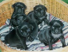 Die Mops - Kinder des B-Wurfes, des allerersten Mops - Wurfes im Hause Pugnax, entstammen der Mops - Ehe zwischen "Misou" und "Ivanhoe vom Mühlholz"