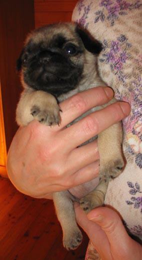 Mamsell'chen ist ein bezaubernder Welpe, als Einzelkind sehr aufgeweckt und an seiner Umgebung hoch interessiert. Das Kind führt auf unsere Canis Pugnax Petit Cherie Mim zurück, dessen Enkelin sie ist und der sie auf diesem Bild sehr ähnlich sieht. Mim war eine bezaubernde Hündin, die uns für immer in besonders lieber Erinnerung bleibt. Mamsell stellt unsere jüngste - 7. selbstgezogene Mops - Generation dar und ist auch ein Enkelkind des prachtvollen Nepomuk, der sich in Österreich als Vererber ganz besonders vitaler und schöner Möpse erwiesen hat. Alle bisher gezogenen Generationen spiegeln sich in diesem besonderen Mops - Kind wieder.