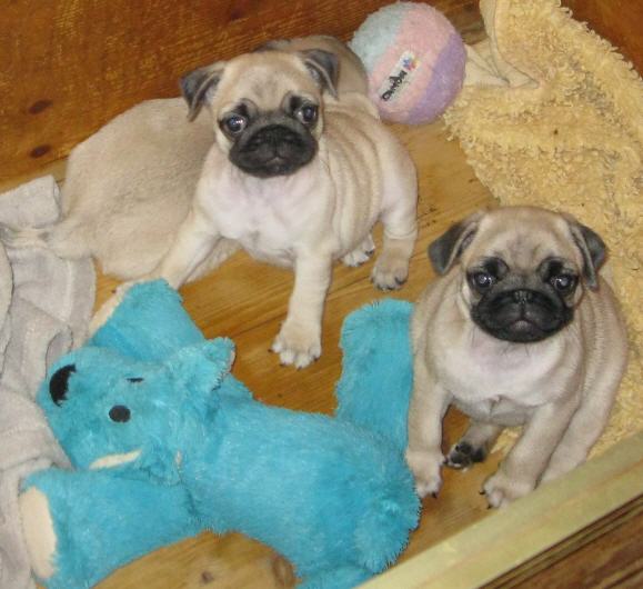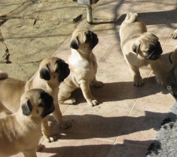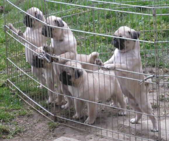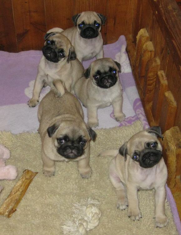 Die Mopskinder aus dem S- und T- Wurf wachsen zusammen auf und zeigen sehr hohe Qualität. Auf den nachstehenden Bildern sind die Kleinen jetzt 7 Wochen alt.