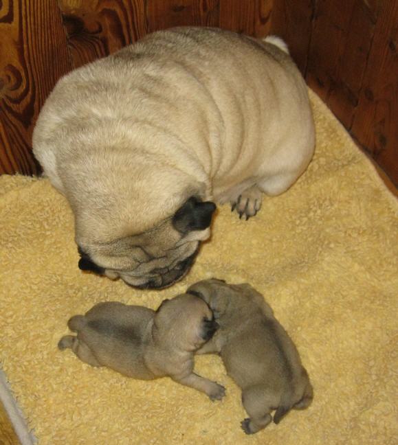 Am 22.12.2014 kamen in einer sehr leichten Geburt die Mopswelpen : Canis Pugnax Sindbad und Canis Pugnax Schönchen Goldhaar aus Canis Pugnax Quid Pro Quo und Canis Pugnax Esmeralda auf die Mopswelt.